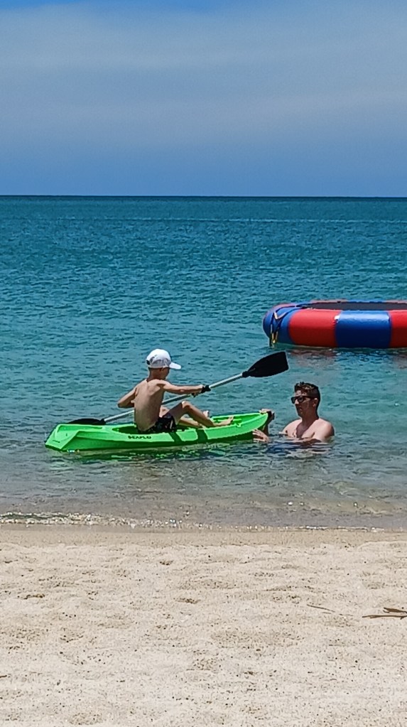 Ein ganzer Strandtag! Fast ein bißchen „wenig“ für uns, aber es tat unheimlich gut. Heut früh waren wir auch lange (fast) alleine, gegen Nachmittag füllt sich der Strand- aber von Sardinenliegen u keine Liegen mehr oder gar Handtuchbesetzten fehlt hier jede Spur!