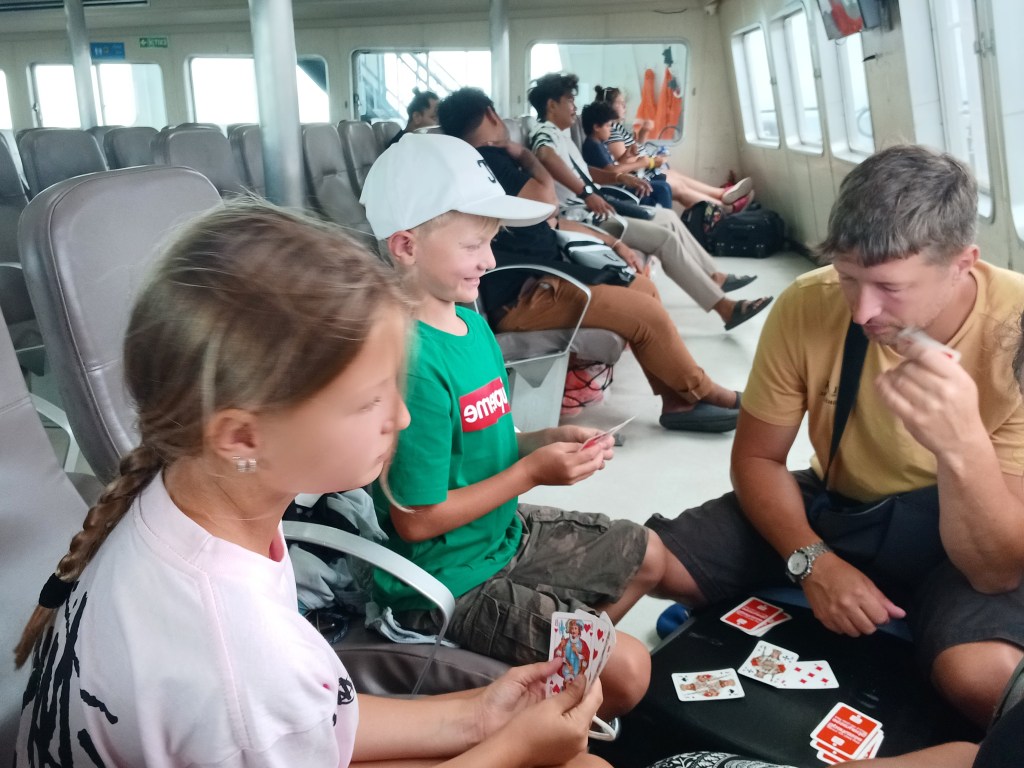 Heute waren wir nochmals am Strand und haben gemütlich gefrühstückt, sind in den Pool gesprungen und um 10.30 kam unser Taxi Richtung Fähre. Ziemlich stürmisch auf der Fähre (ja die Regenzeit beginnt).